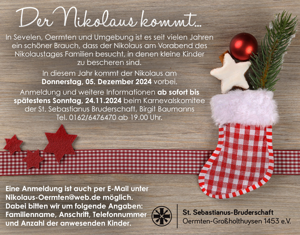🎅 Der Nikolaus kommt bald nach Oermten, Sevelen und Umgebung! 🎅
