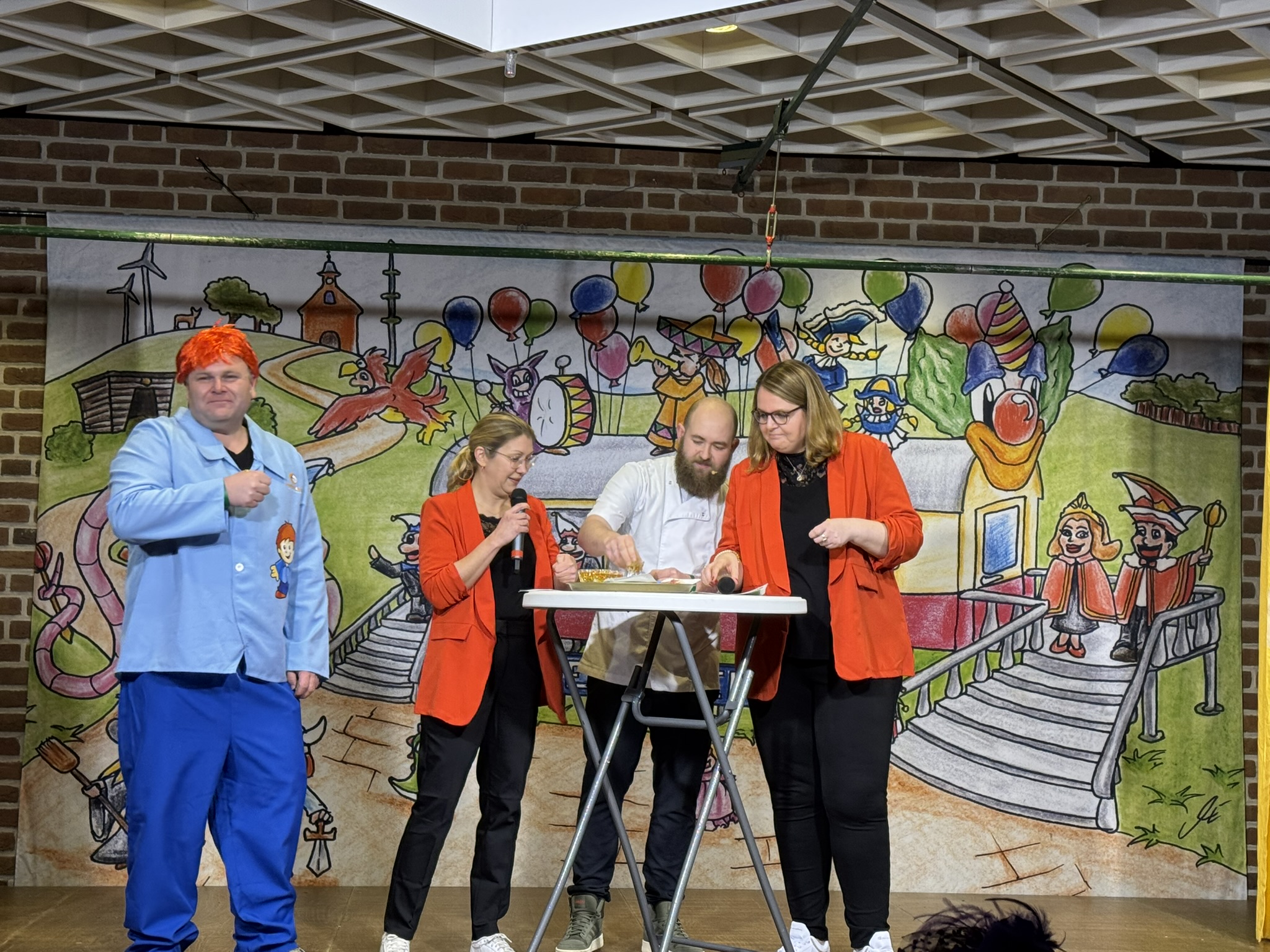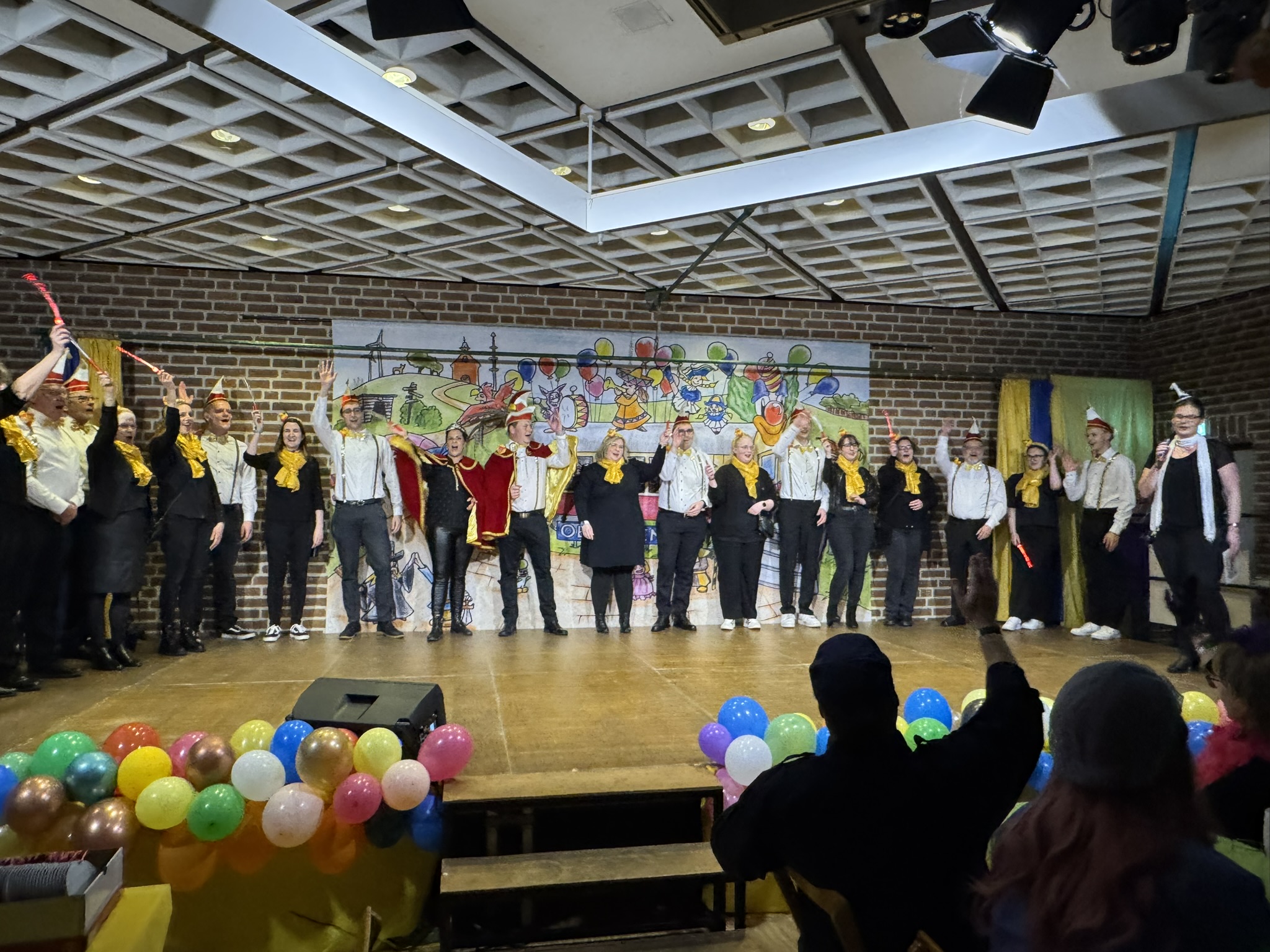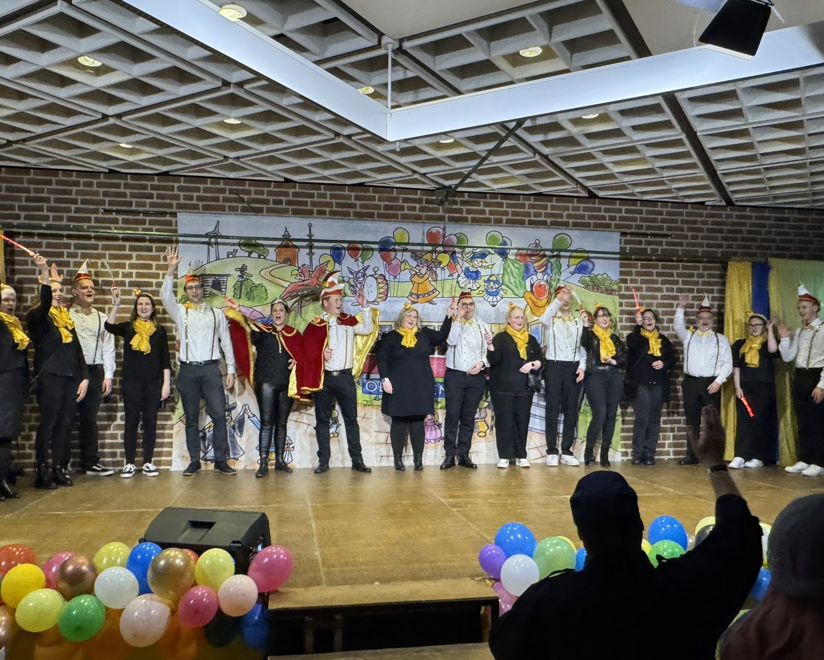 Zum großen Finale versammelten sich alle Aktiven auf der Bühne, um gemeinsam das Schlusslied zu singen – und damit zwei unvergessliche Tage Karneval zu beenden!