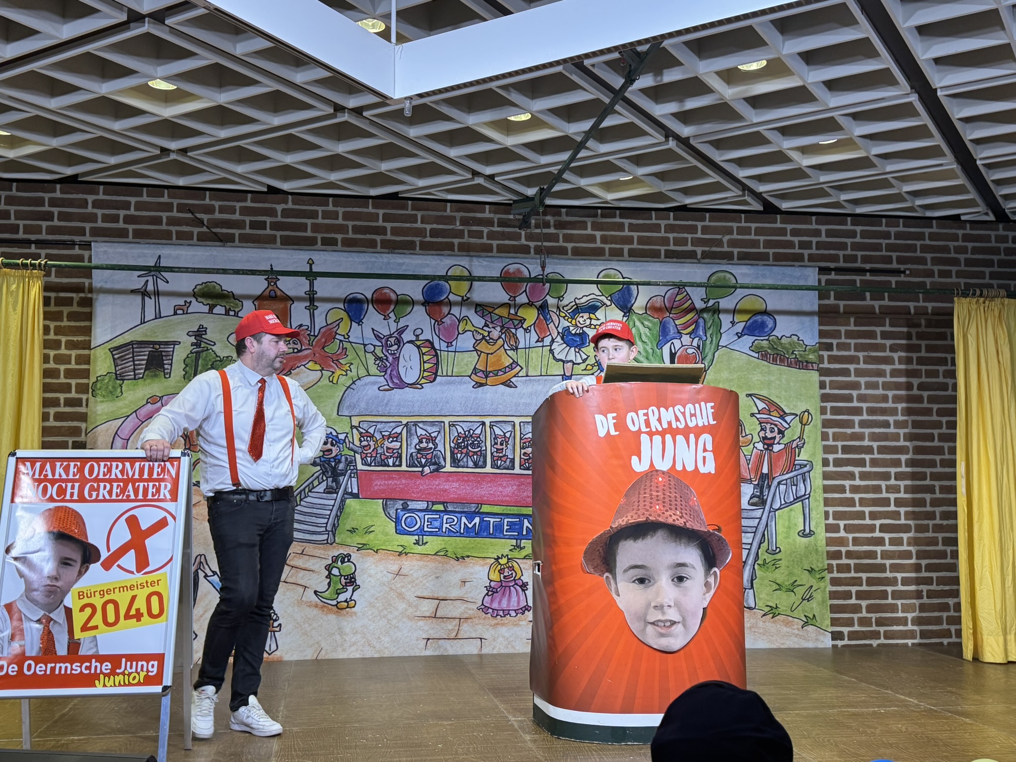 • De Oermsche Jung & sein Wahlkampfleiter sorgten für Lacher mit ihrem humorvollen Blick in die Zukunft.